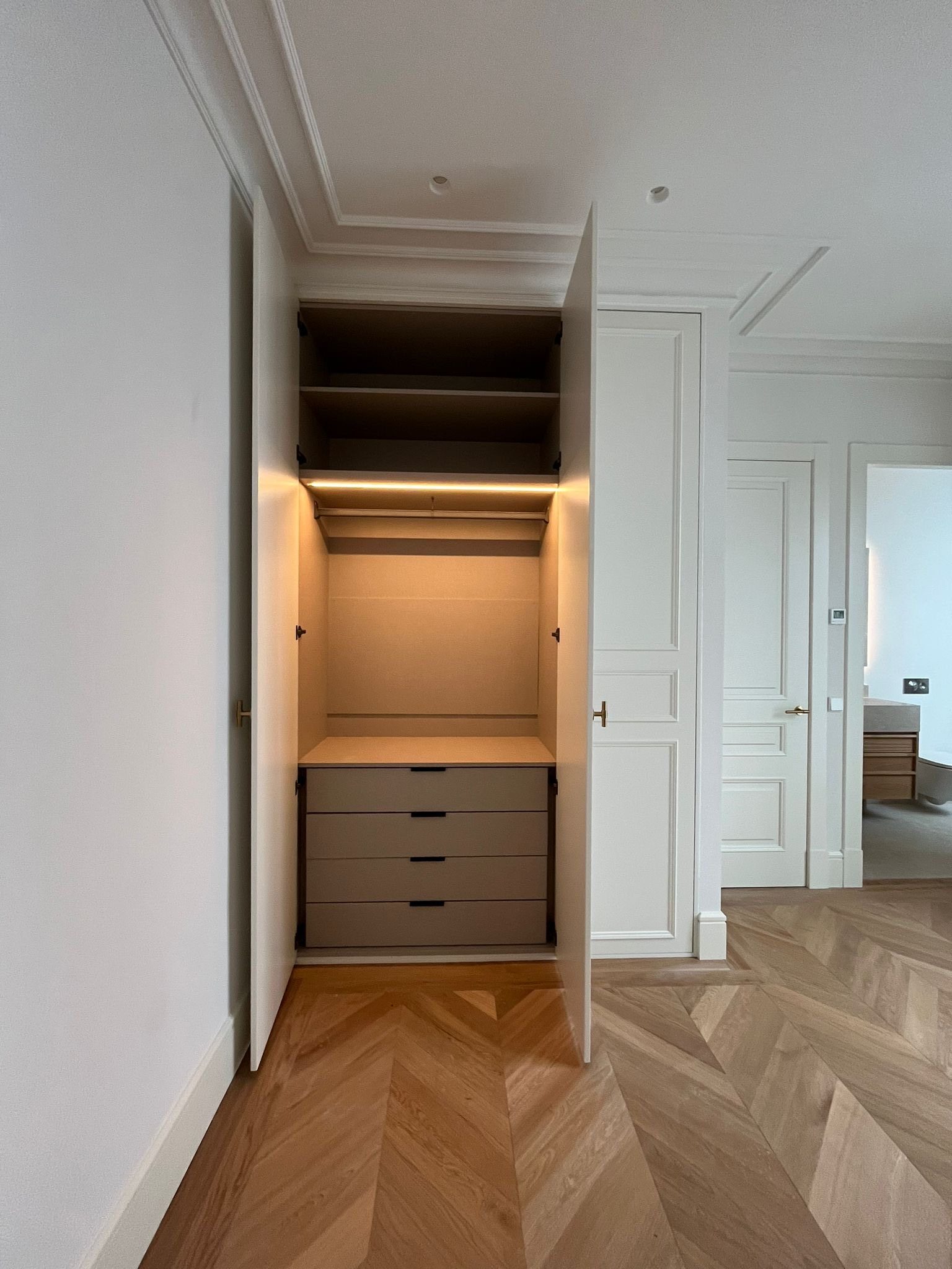 Nuestros diseñadores trabajan estrechamente contigo para ofrecerte una solución estética, práctica y completamente adaptada a tus necesidades. Ya sea un armario empotrado, un vestidor, o un sistema modular, te ayudamos a aprovechar al máximo cada rincón.